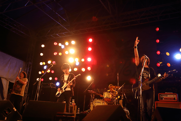 今、面白いロックンロール・バンドがライブハウスではたくさん出てきている。そのロックンロール・シーンを、ここ数年に渡って、牽引している期待のホープがTHE BOHEMIANSだ。とくにここ1年くらいのバンドの成長ぶりには目を見張る。彼らは常に会場と観客にアジャストしたステージをやる。たとえば対バンがロックンロール・バンドばかりだったら初期衝動でおす。広い会場で比較的長い時間演奏できるときにはポップな楽曲からロックンロールまで織り交ぜたエンタテインメントショウを作っていく。それは器用さやサービス精神のあらわれではない。彼らはいつだって「勝ち」に行っているのだ。たまには対バンに負かされることもあるけれど、結果はどうでもいい。「勝ちに行く姿勢」がいいのだ。それが一番大事だ。そこを高く評価したい。この日、演奏されたのは「THE ROBELETS」「太陽ロールバンド」「GIRLS(ボーイズ)」「male bee,on a sunny day. well well well well!」「I ride genius band story」「ダーティーでリバティーなベイビー、お願いだから」「That Is Rock And Roll」の7曲。いろんなタイプのミュージシャンやバンドが混在するフェスのなかで、ボヘミンズはど真ん中のロックンロールを鳴らした。青空の下で繰り広げられるパフォーマンスを見ていると、日比谷野音でボヘミアンズを見たくなった。晴天の野音、雨の野音、どちらも似合いそうだ。