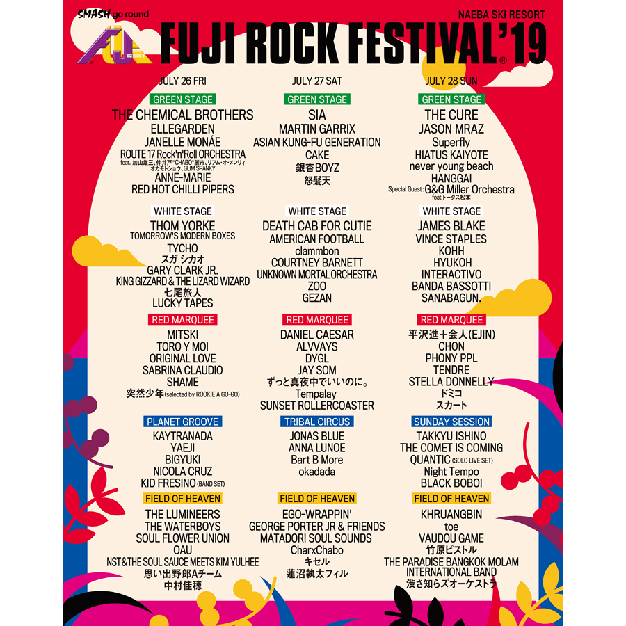 FUJI ROCK FESTIVAL '19 : FULL LINEUP + TIME TABLE ANNOUNCEMENTFUJI ROCK FESTIVAL’19