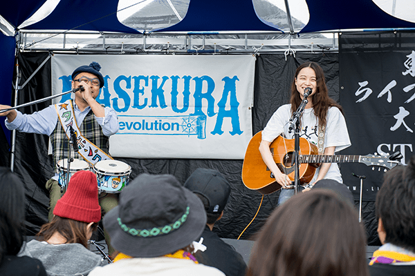 HASEKURA付近でしばし休憩しているとザ・ビートルズの「All You Need Is Love」が聴こえてくる。片平里菜のリハーサルだ。このあとTSUGARUでの出演も控える彼女が、まずは弾き語りを披露。