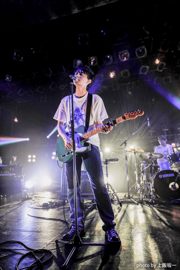 「おととい、ここ(リキッドルーム)でクロマニヨンズのライブを観てたんですよ。うおーーー!マーシー!ヒロト!ってなりながら同時に、明後日はあそこに自分が立つんかー…って思い。あんな風に上手なコールアンドレスポンスはできないけれど、こっちはこっちで楽しいしいいですよね」と、憧れの存在と同じライブハウスのステージに立っていることに感慨深げな様子を漂わせつつ、本日ひとつめの嬉しいサプライズとして、菅田が愛聴していることを公言するあいみょんの「ふたりの世界」のカバーを披露。女性目線の曲も歌ってみては、という周囲の女性スタッフからのリクエストに応える形で今回のカバーをしてみようと思ったとのことで、あいみょん特有の語りかけるような愛らしい1曲を非常に表現力豊かに歌い上げる。続いて、今日も会場でライブを観ているはずの菅田の友人が最近よく聴いていると言ってきたというエピソードを混ぜつつ「ばかになっちゃったのかな」へ。「奴は恋でもしているんでしょうか?」とステージ上から友人へとメッセージを送る姿も、ライブハウスならではの距離感といったところで非常に微笑ましい。その後、さらにライブの中盤では、自身がMVにも出演した盟友・石崎ひゅーい「ピリオド」のカバーを用意。菅田将暉の役者としての側面と、ミュージシャンとしての側面が見事に融合したかのようなこのカバーには、聴いているこちらも身震いせざるをえなかった。