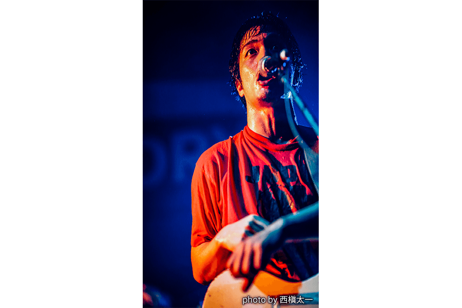 さかしたは「Age Factory呼んでくれてありがとうございます」や「最後までみなさん楽しんでいってください」など必要以上に多くは語らないクールな佇まい。だが丁寧な言い回しと渾身の演奏に、共演者や観客への敬意が詰まっていた。青いライトのなか披露された「深海旅行にて」は、メランコリックでマイナー調の音色に緊張感が通い、メンバーの集中力はより強度を増す。アウトロではさかしたがギターを弾き倒し、バスドラの上に飛び乗るなど、観るものを驚嘆させる迫真のパフォーマンスを見せた。